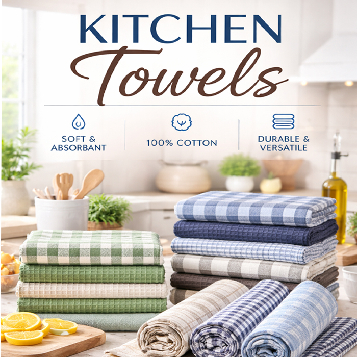 Made from premium, absorbent fabrics, our kitchen products are designed to provide excellent performance and long-lasting durability. Each item is carefully produced to ensure strong stitching, soft texture, and reliable functionality, making them ideal for both home kitchens and hospitality environments.